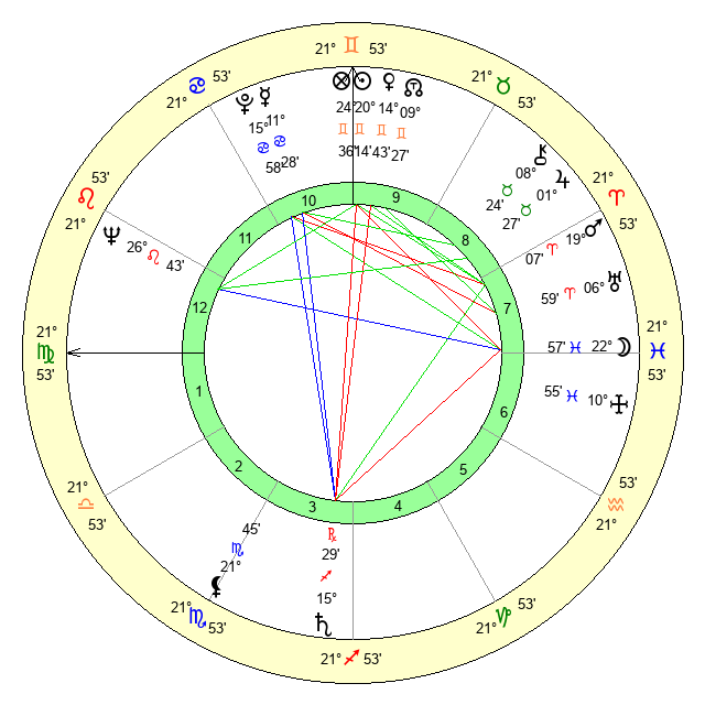 | Sun | 20 Gemini 15 | 20 Gemini 47 | 23 Virgo 19 |