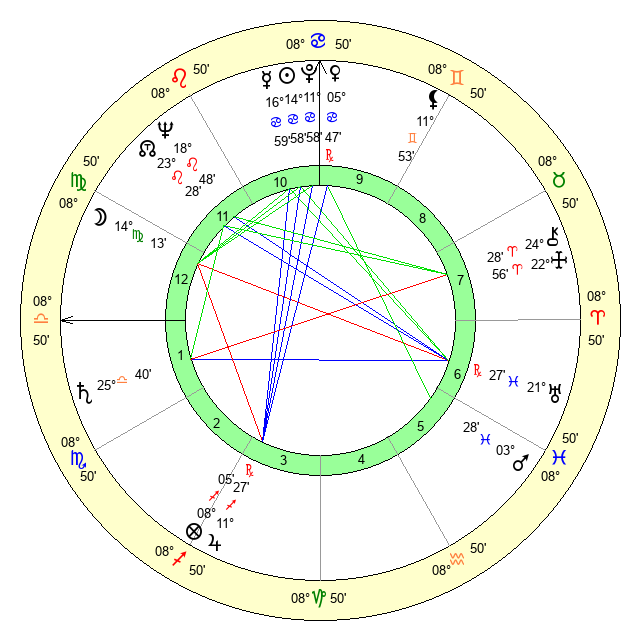 | Sun | 14 Cancer 59 | 15 Cancer 33 | 22 Libra 46 |