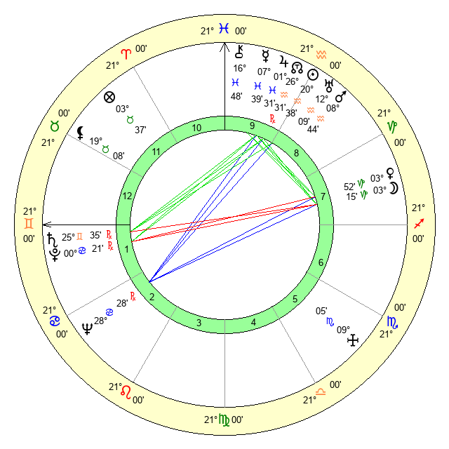 | Sun | 20 Aquarius 38 | 21 Aquarius 57 | 8 Gemini 54 |