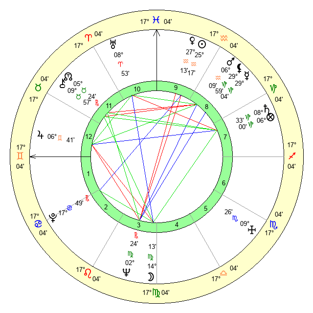 | Neptune | 2 Virgo 24 | 28 Pisces 23 | 0 Virgo 49 |