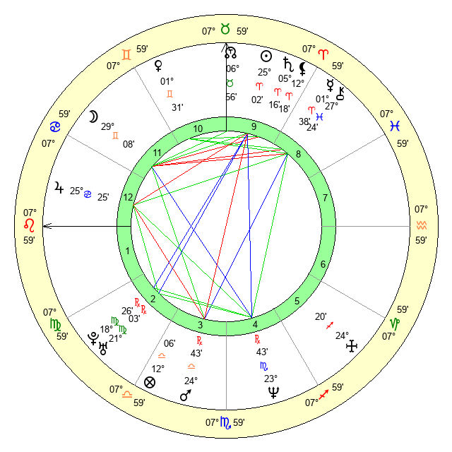 Sun | 25 Aries 2 | 25 Aries 58 | 21 Gemini 2 |