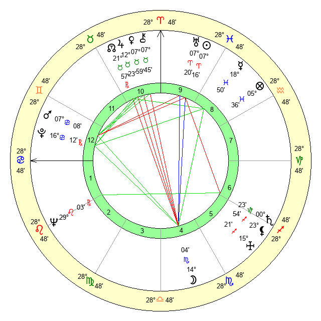 | Moon | 13 Scorpio 59 | 24 Pisces 3 | 8 Taurus 52 |