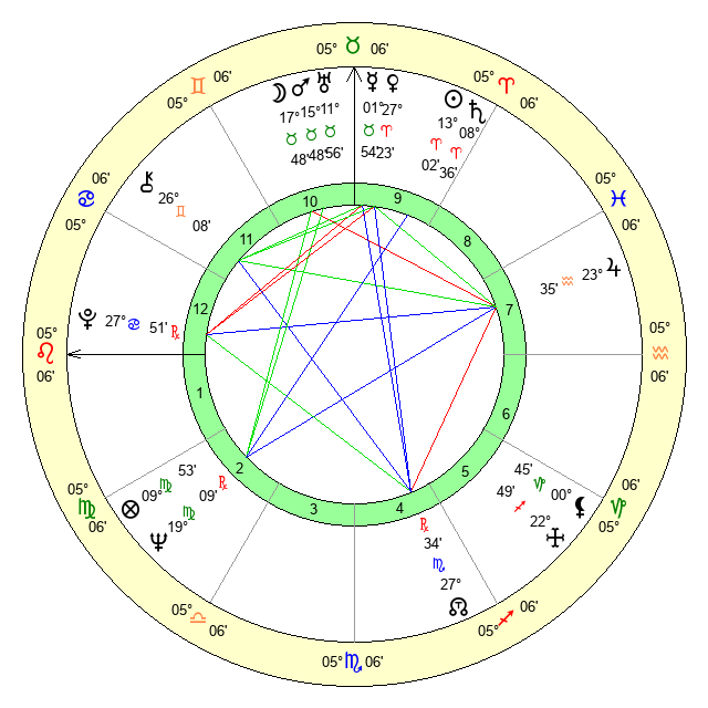 | Venus | 27 Aries 23 | 26 Pisces 29 | 12 Leo 44 |