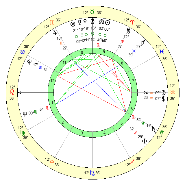 | Mars | 27 Pisces 40 | 1 Leo 29 | 7 Gemini 45 |