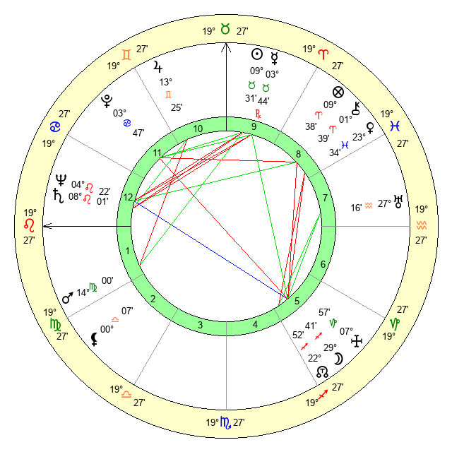 | Saturn | 8 Leo 45 | 27 Pisces 44 | 19 Leo 15 |