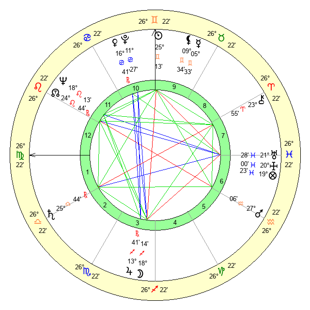 | Saturn | 26 Libra 22 | 1 Aries 14 | 1 Scorpio 48 |