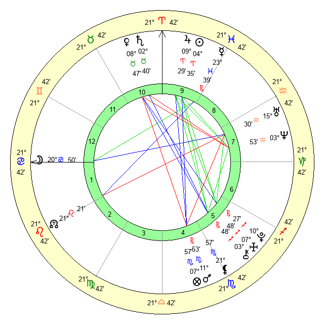 | Moon | 20 Cancer 54 | 14 Aquarius 24 | 3 Cancer 19 |