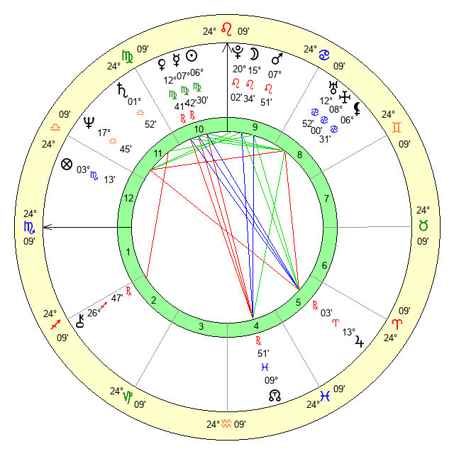 | Mercury | 7 Virgo 42 | 24 Leo 39 | 6 Sagittarius 34 |