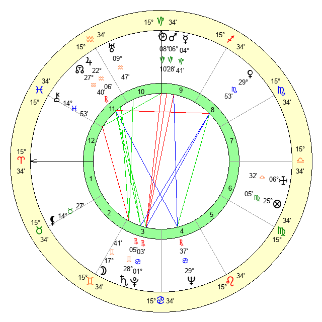 | Moon | 17 Gemini 42 | 6 Capricorn 43 | 25 Gemini 40 |