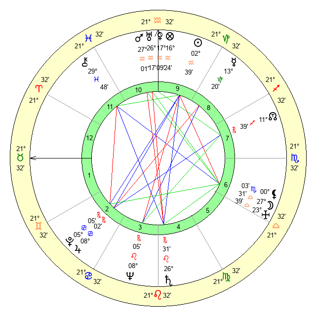| Moon | 27 Libra 30 | 24 Scorpio 1 | 19 Virgo 39 |