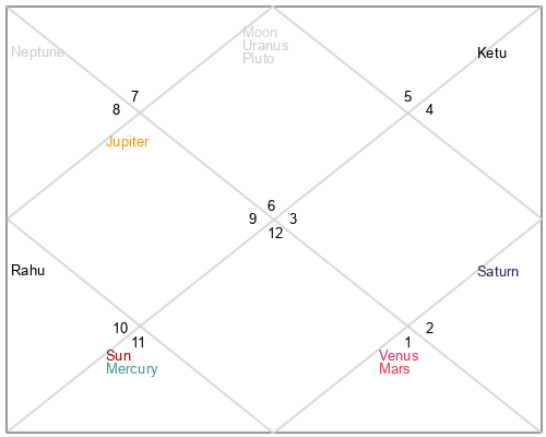 | Rahu | 3 Aquarius 24 | 28 Pisces 20 | 0 Aquarius 36 |