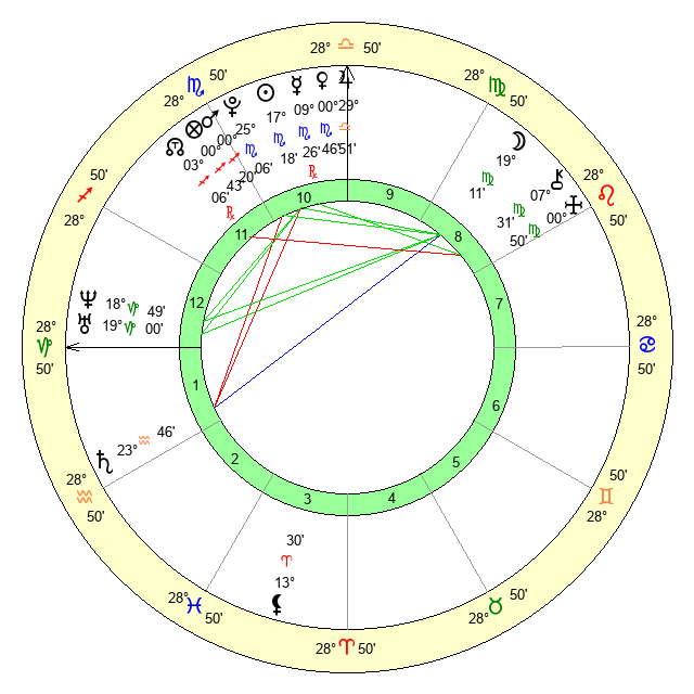 | Moon | 19 Virgo 13 | 15 Cancer 28 | 27 Scorpio 15 |