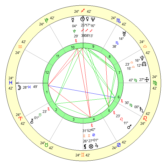 | Saturn | 0 Virgo 54 | 13 Pisces 31 | 28 Leo 37 |
