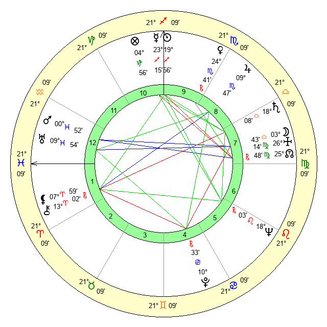 | Moon | 3 Libra 45 | 15 Taurus 58 | 22 Gemini 0 |