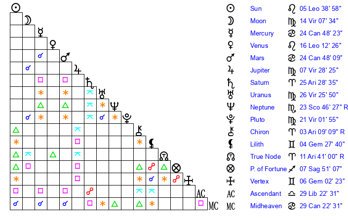 Moon | 14 Virgo 13 | 23 Virgo 28 | 17 Libra 1 |