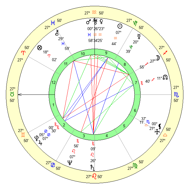 | Neptune | 7 Leo 56 | 27 Pisces 52 | 6 Leo 43 |