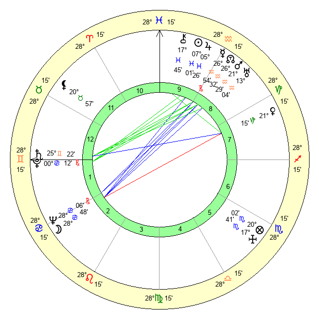 | Sun | 7 Pisces 1 | 8 Pisces 21 | 24 Gemini 26 |