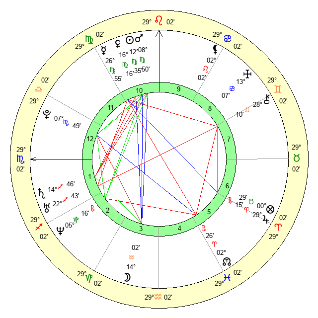 Venus | 16 Virgo 17 | 13 Leo 13 | 3 Scorpio 33 |