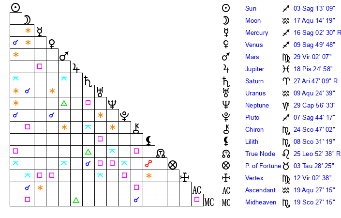 Moon | 17 Aquarius 16 | 2 Libra 48 | 1 Aquarius 30 |