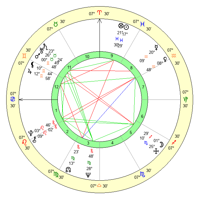 | Sun | 17 Pisces 30 | 18 Pisces 22 | 8 Gemini 38 |