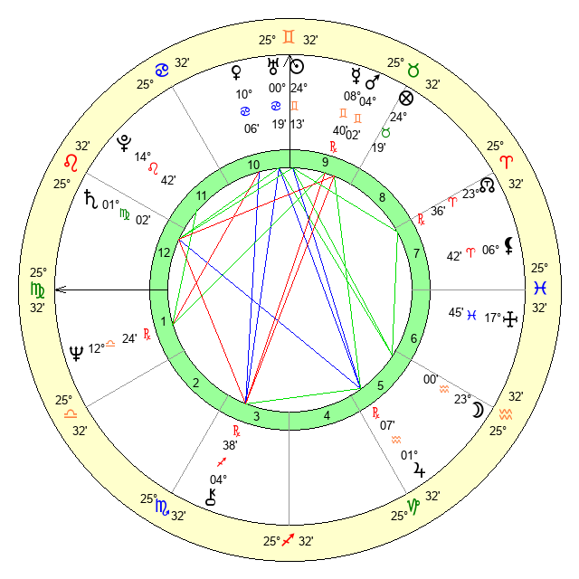 | Sun | 24 Gemini 14 | 24 Gemini 50 | 6 Virgo 58 |