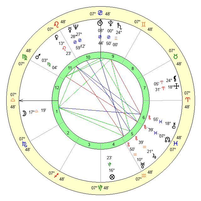 | Moon | 17 Libra 22 | 24 Virgo 53 | 13 Scorpio 2 |