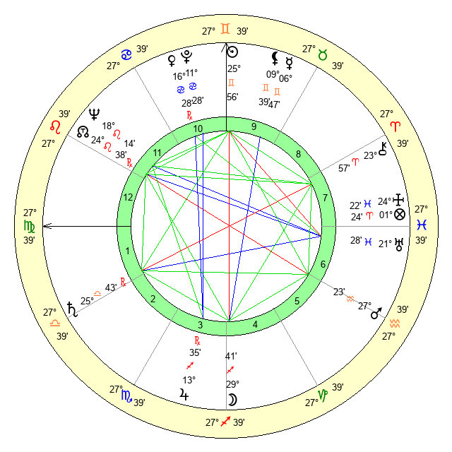 | Sun | 25 Gemini 57 | 26 Gemini 31 | 3 Libra 4 |