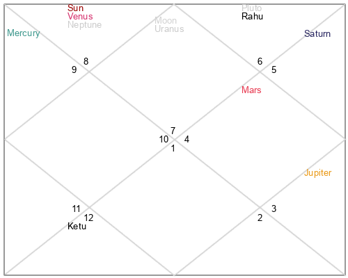 | Rahu | 11 Libra 50 | 13 Pisces 27 | 9 Libra 17 |