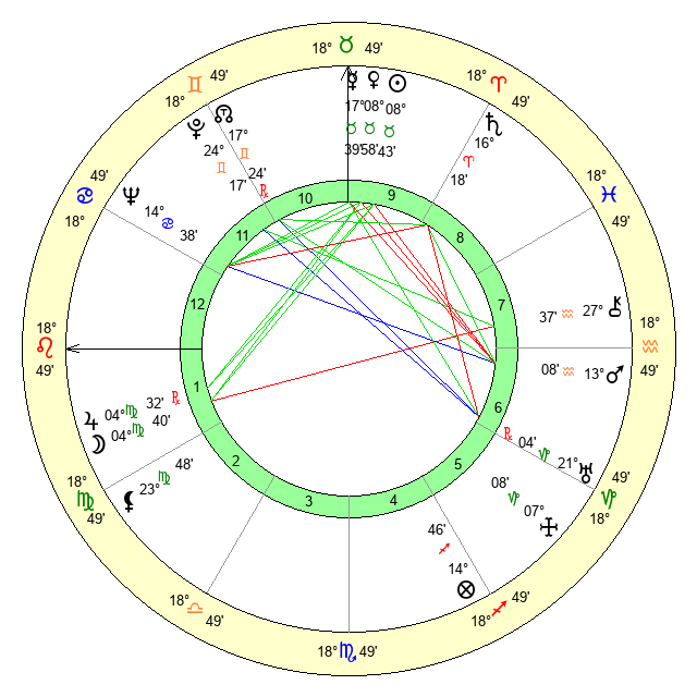 | Moon | 4 Virgo 39 | 6 Gemini 33 | 24 Scorpio 45 |