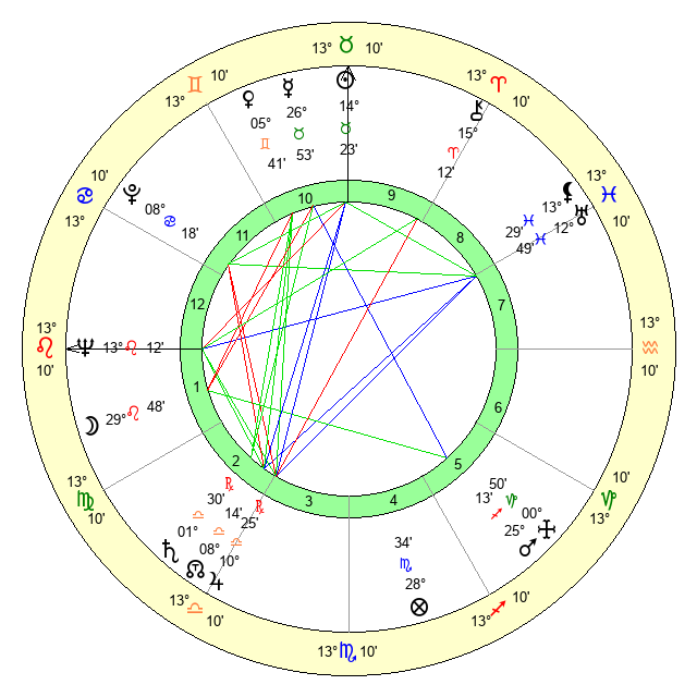 | Moon | 29 Leo 55 | 28 Leo 42 | 2 Gemini 36 |