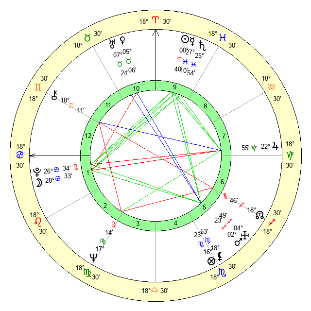 | Moon | 28 Cancer 36 | 22 Sagittarius 20 | 17 Libra 52 |