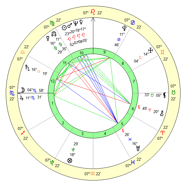 | Moon | 4 Scorpio 57 | 16 Gemini 22 | 22 Cancer 14 |