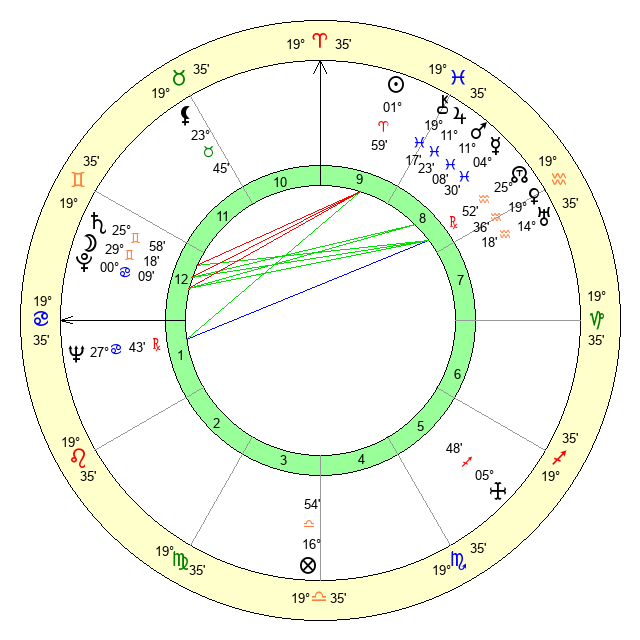 | Sun | 1 Aries 59 | 3 Aries 19 | 18 Cancer 17 |