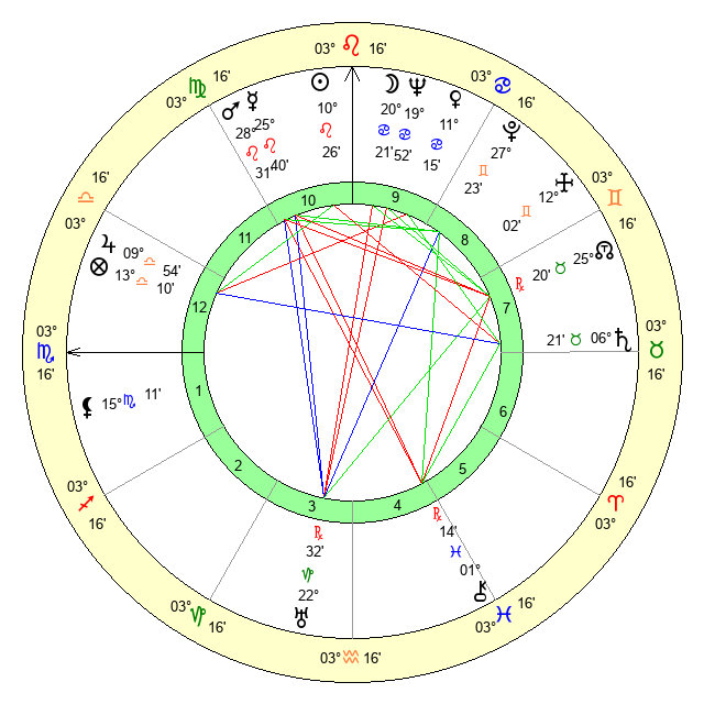 | Mars | 28 Leo 32 | 27 Virgo 58 | 13 Scorpio 37 |