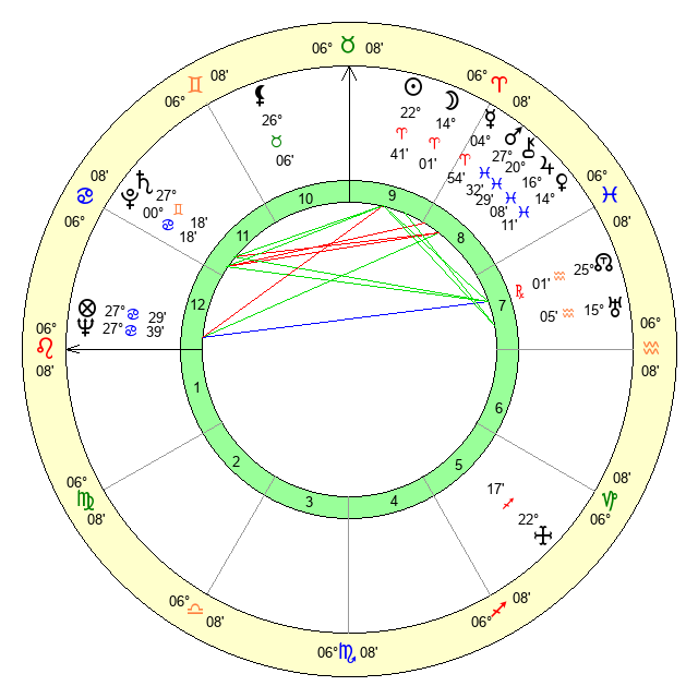 | Sun | 22 Aries 41 | 24 Aries 1 | 8 Leo 20 |