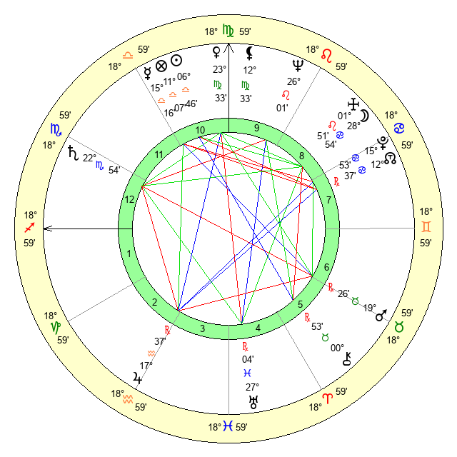 | Venus | 23 Virgo 34 | 13 Virgo 42 | 27 Capricorn 46 |