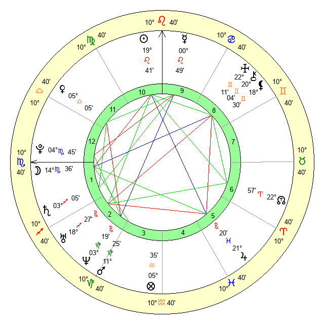 | Moon | 14 Scorpio 35 | 3 Aries 42 | 27 Aries 6 |
