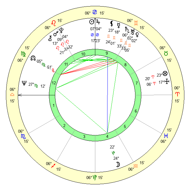| Sun | 7 Cancer 18 | 8 Cancer 12 | 27 Virgo 5 |