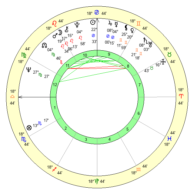 | Sun | 22 Cancer 33 | 23 Cancer 27 | 12 Libra 48 |