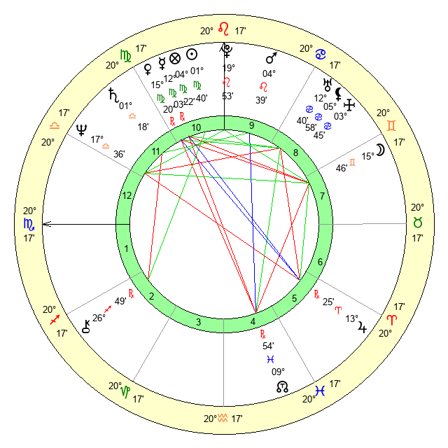 | Sun | 1 Virgo 40 | 2 Virgo 45 | 14 Scorpio 28 |