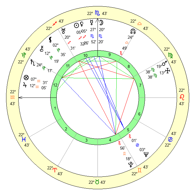 | Moon | 20 Scorpio 15 | 11 Pisces 51 | 12 Taurus 53 |