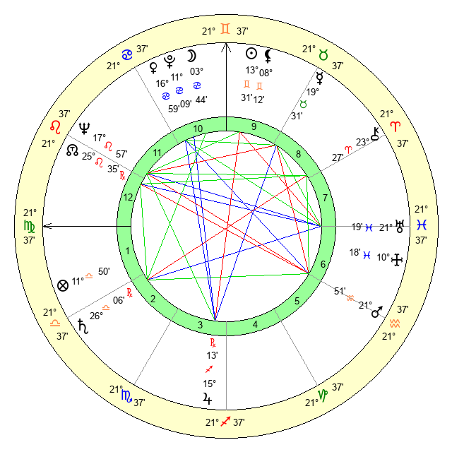 | Sun | 13 Gemini 31 | 14 Gemini 5 | 20 Virgo 22 |