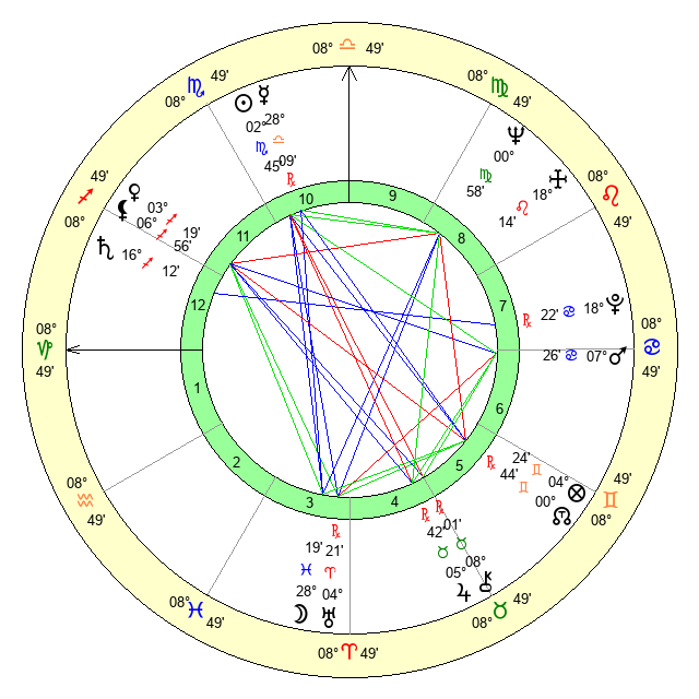 | Neptune | 0 Virgo 59 | 29 Pisces 53 | 0 Virgo 31 |