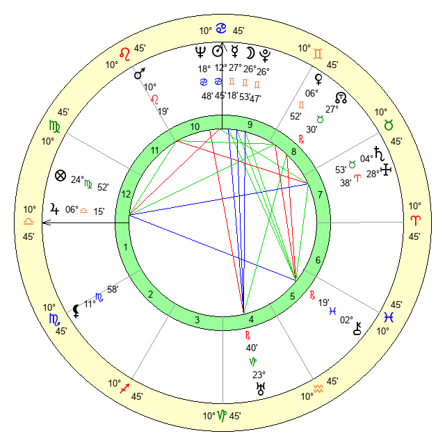 | Jupiter | 6 Libra 3 | 5 Cancer 54 | 26 Libra 48 |