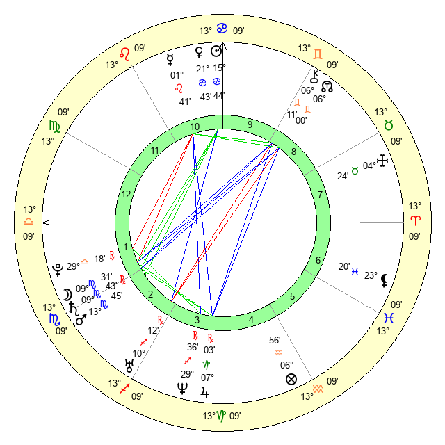 | Mars | 13 Scorpio 45 | 11 Virgo 41 | 29 Scorpio 55 |