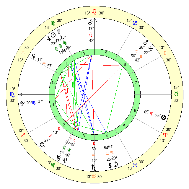 | Mercury | 13 Virgo 36 | 15 Virgo 10 | 8 Scorpio 52 |