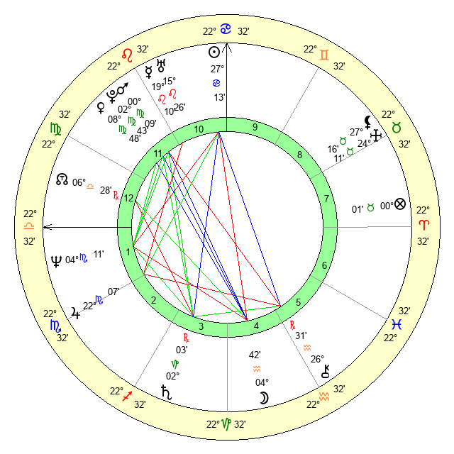 | Venus | 8 Virgo 48 | 18 Gemini 0 | 29 Leo 56 |