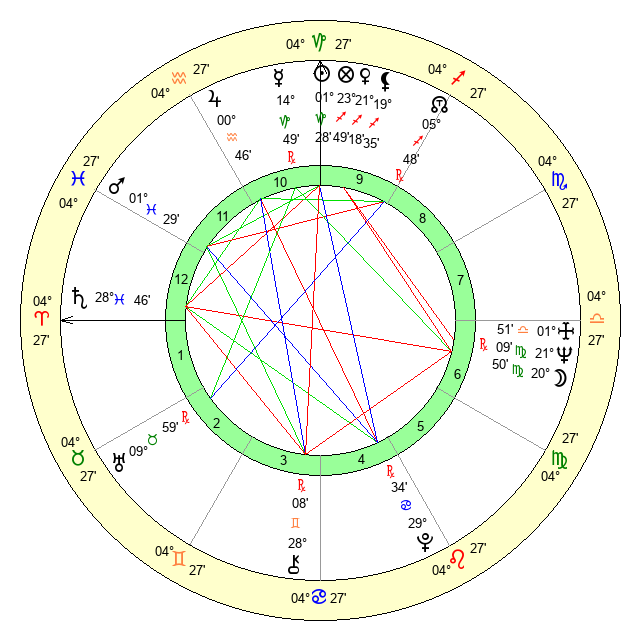 | Saturn | 28 Pisces 53 | 25 Pisces 39 | 7 Aries 7 |