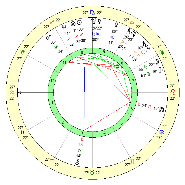 | Mercury | 22 Scorpio 21 | 20 Scorpio 47 | 3 Aquarius 27 |