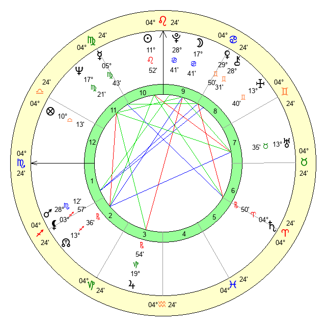 | Mars | 28 Scorpio 11 | 28 Virgo 36 | 21 Capricorn 53 |